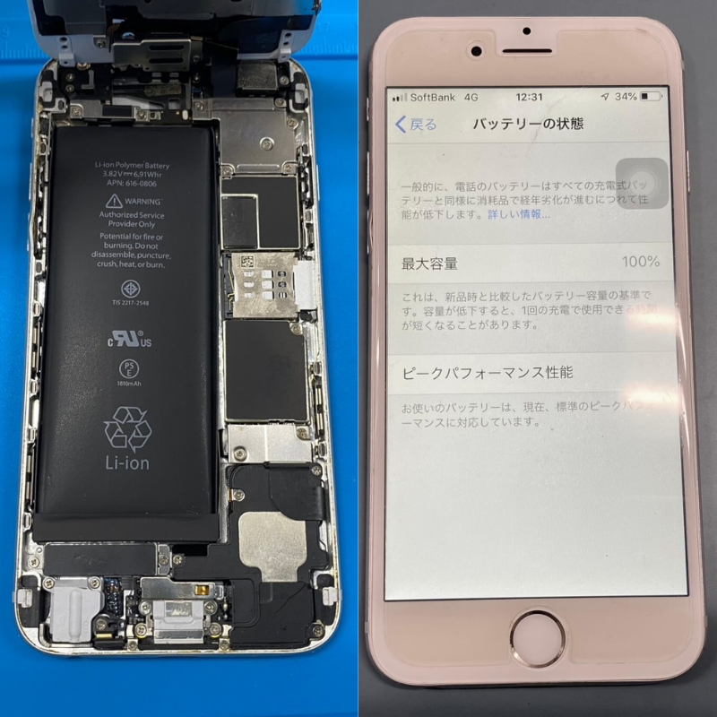 古い機種ではありますので、バッテリー以外の部分に不具合などがなければ、バッテリー交換で iPhone 6のパフォーマンスを発揮できるようになります。