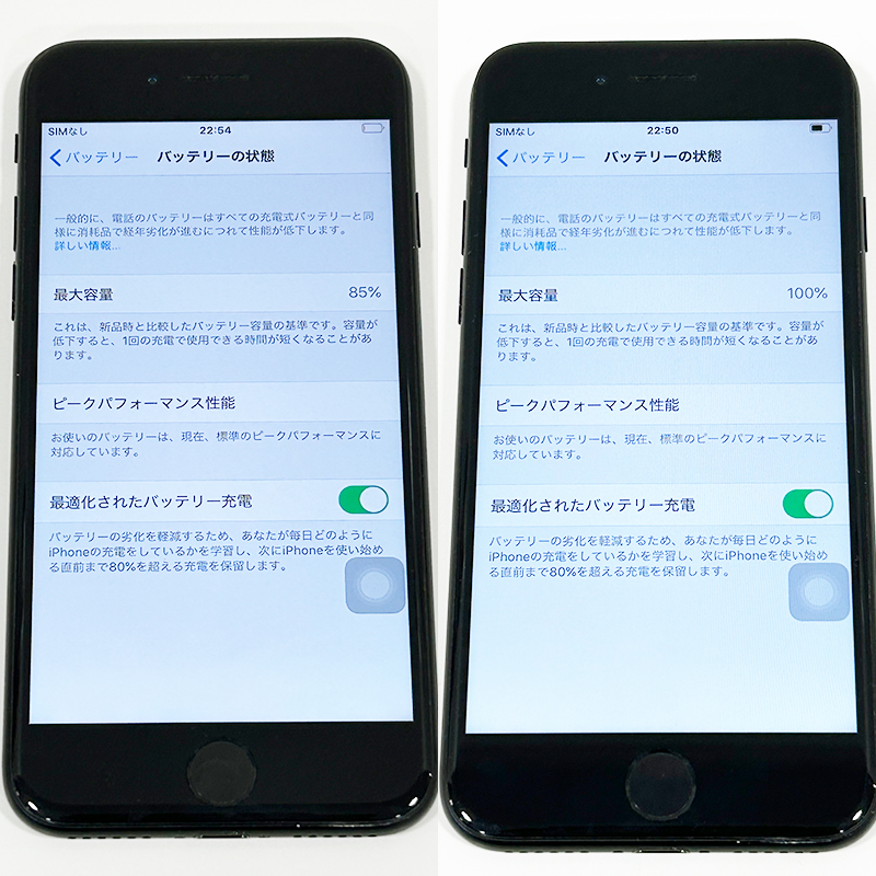 ※1 互換バッテリーに交換をすると、設定画面の修理履歴のバッテリーの欄に「不明」または「不明な部品」と表示されます。なお、バッテリーの最大容量が表示されていない場合は、iOS18.1以上にアップデートして頂くと表示されることを確認しております。