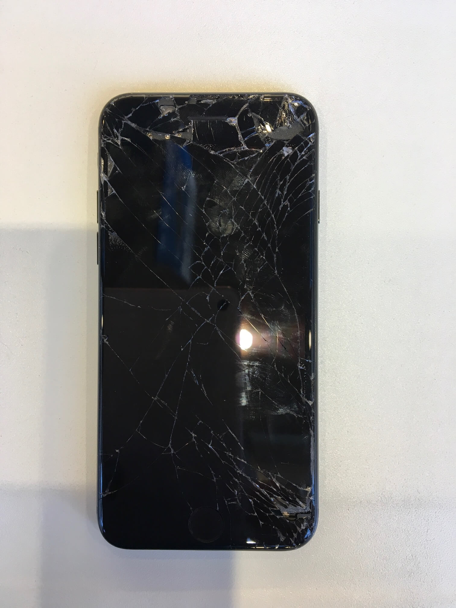 何度も落としてガラスが一部なくなったiPhone7の画面交換