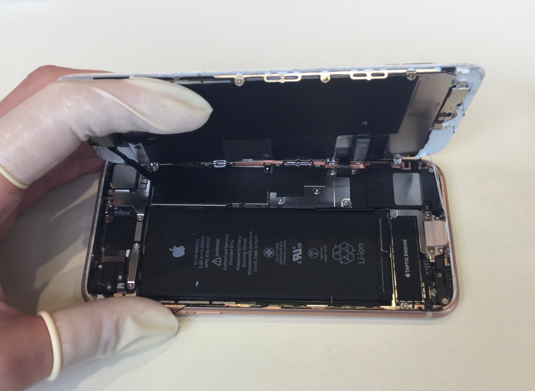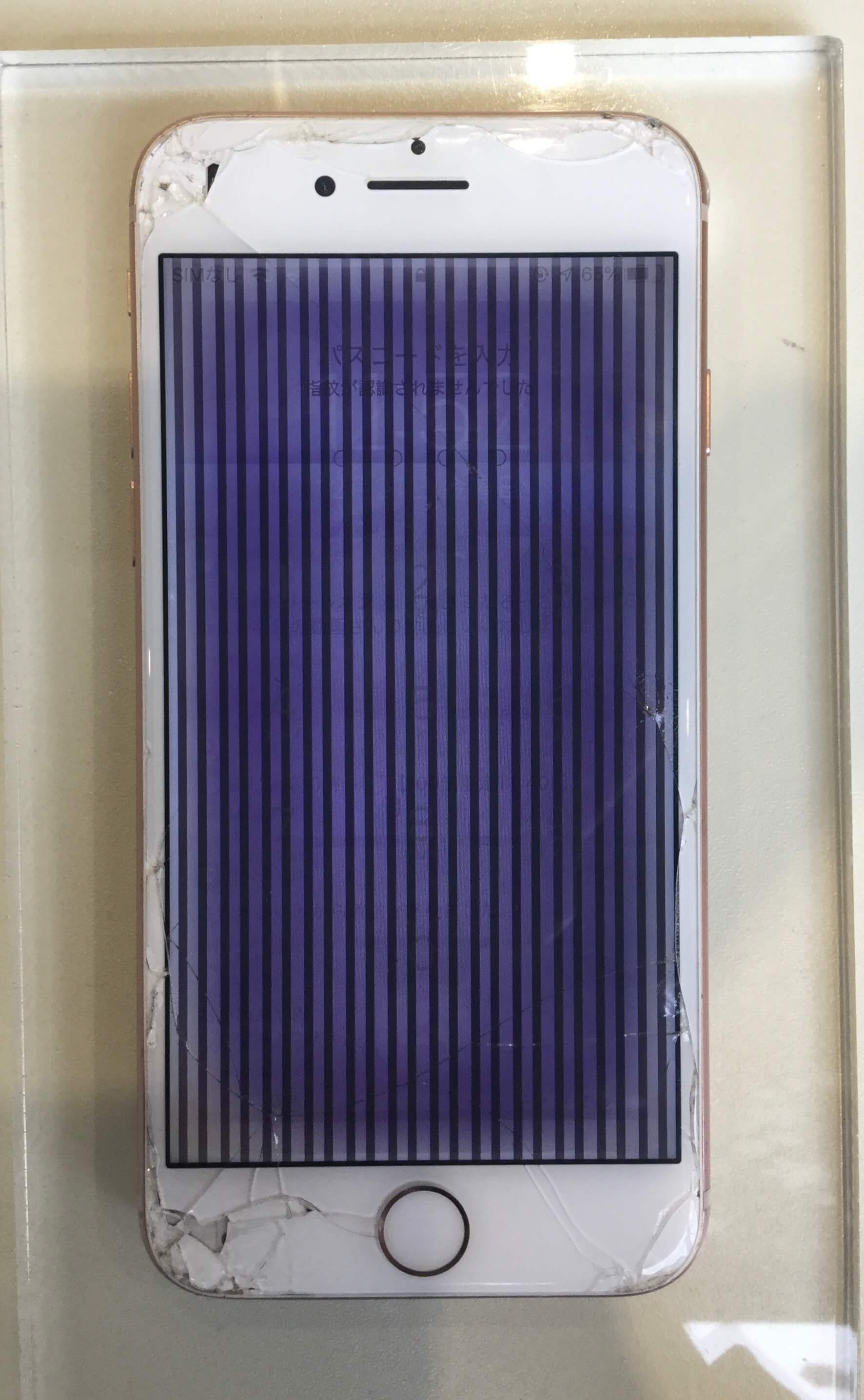 今回の修理レポートは落とされて画面が割れ、液晶にも強い衝撃が加わったため操作ができなくなってしまったiPhone8です。
