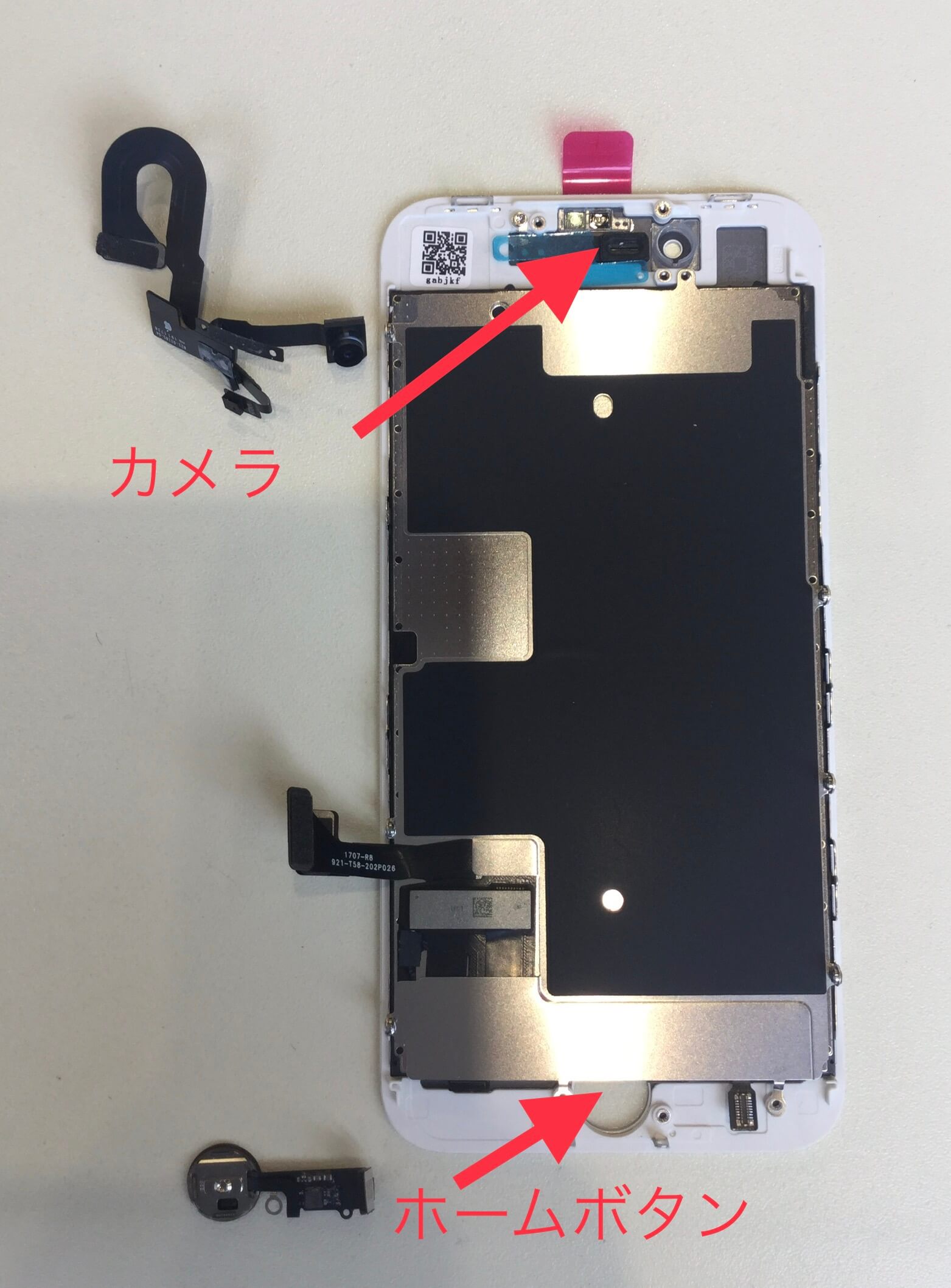 用意した新しいディスプレイへカメラ部分とホームボタン部分は移します。