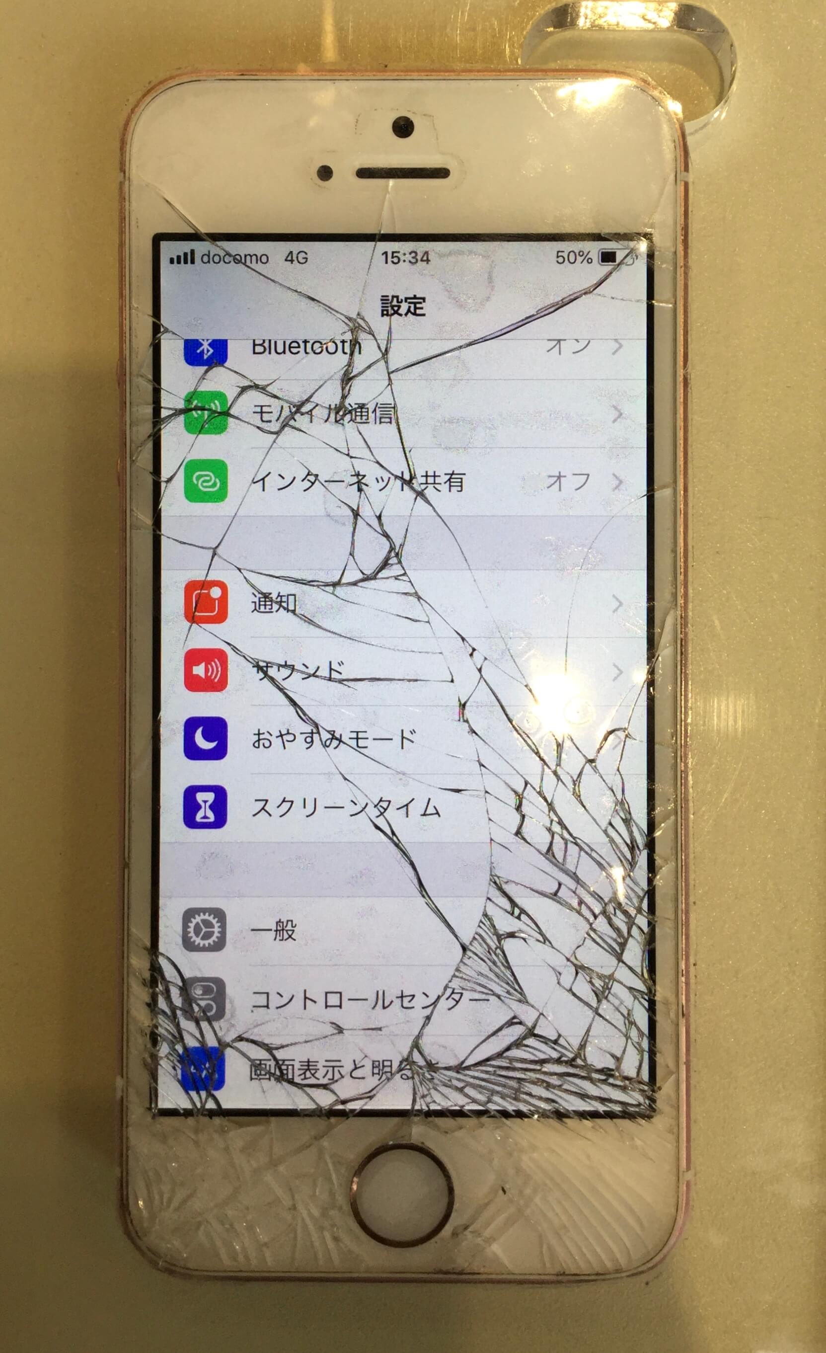 今回は落とされて画面が割れてしまったiPhoneSEの修理レポートです。
