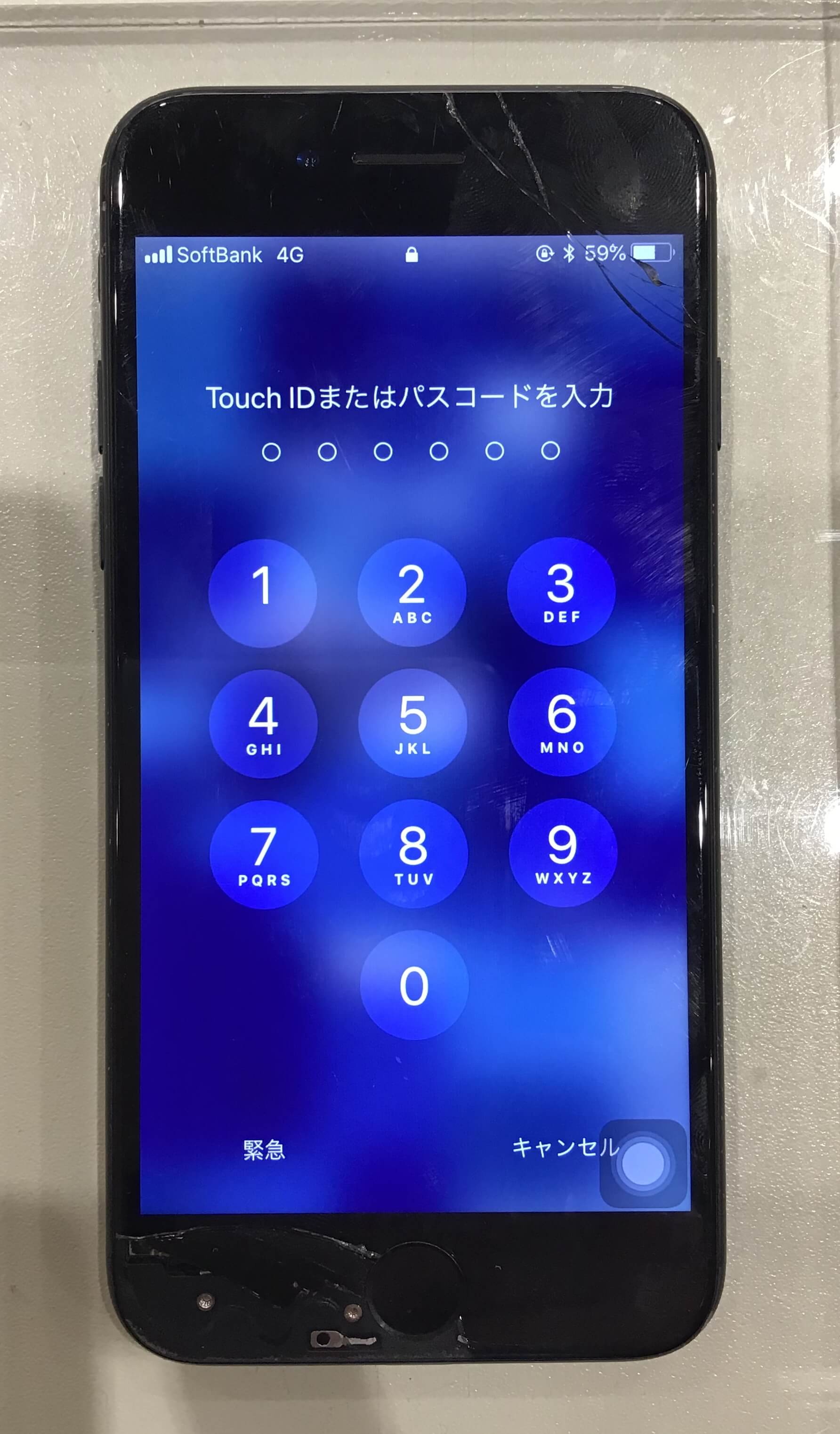 黒くて見えにくいのですが、ホームボタンの横は割れてガラスが無くなっています(>_<;)