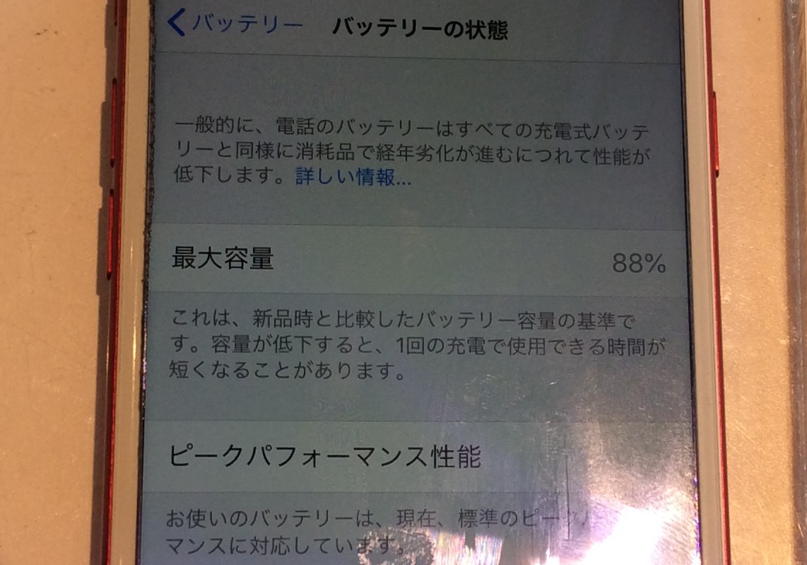 最大容量が88%とのことで、充電の減りが早くなっていらっしゃいます。