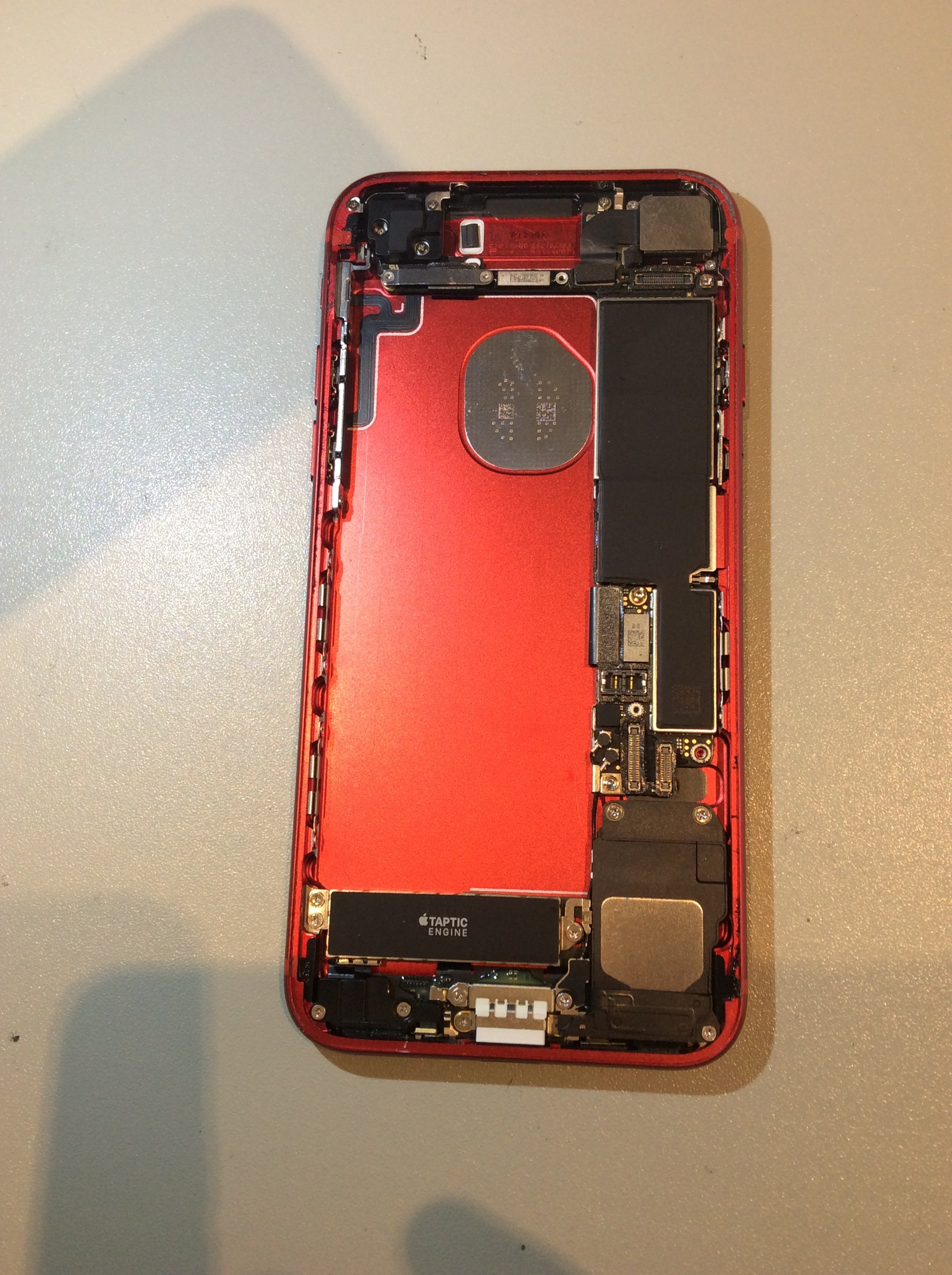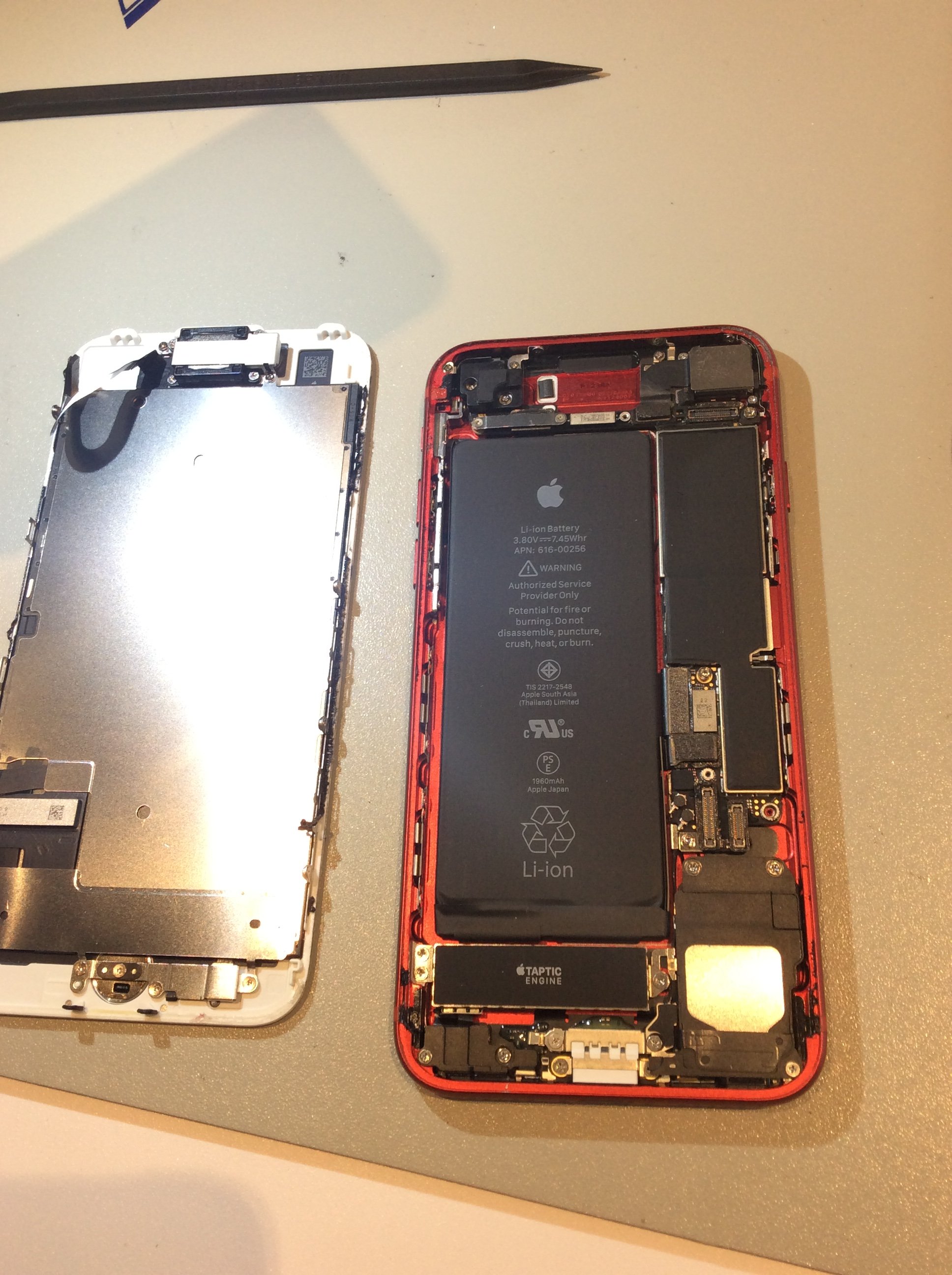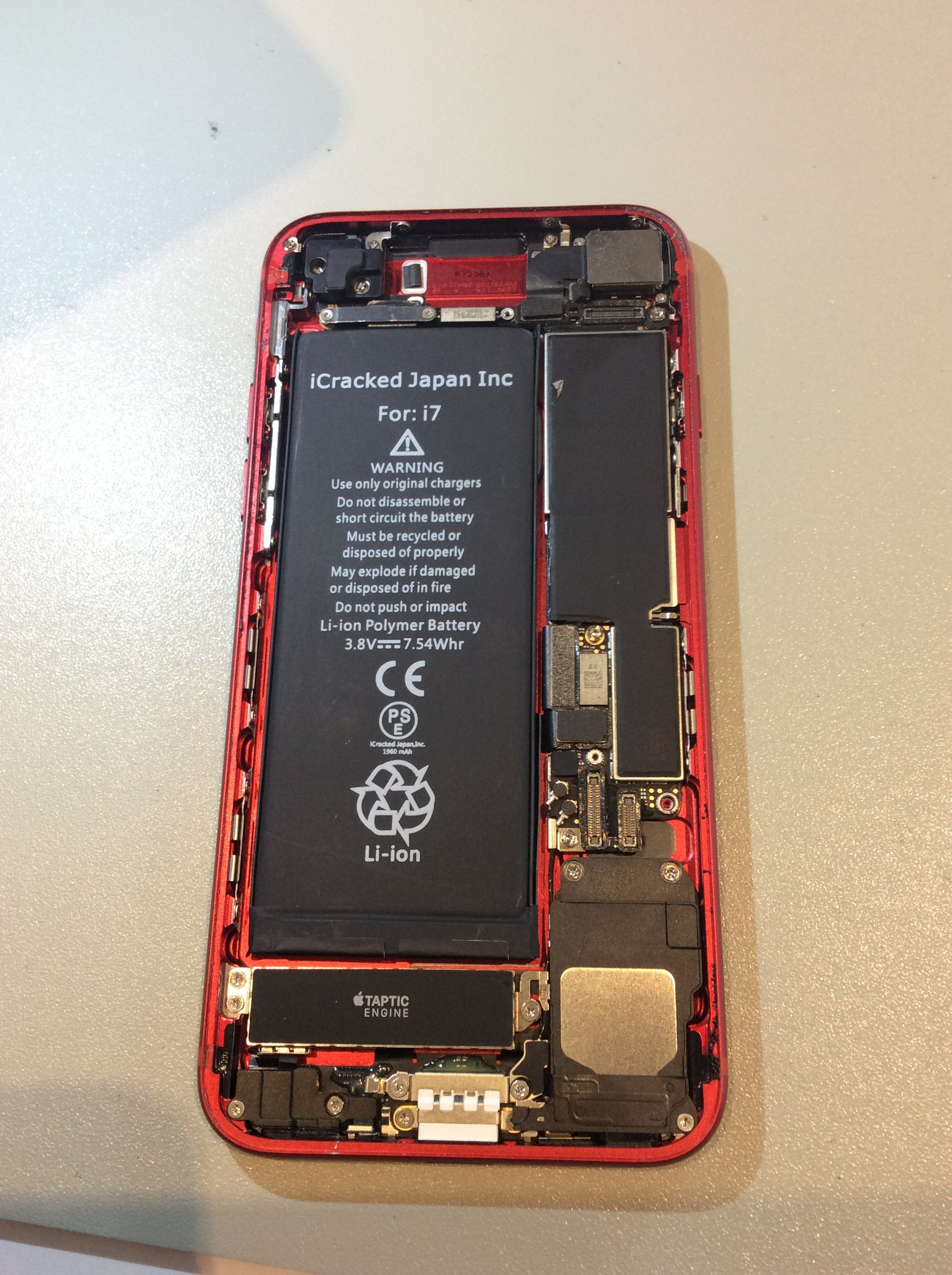 バッテリーがきれいに取れました。 (PRODUCT)REDのiPhoneは中身も真っ赤でカッコイイですね!!