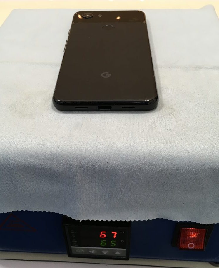本体とディスプレイは強力な粘着で接着されているので機械で温めて粘着を緩めています😌