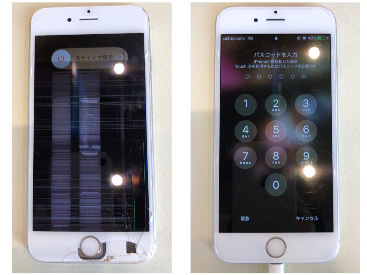 ディスプレイが割れて画面の半分以上が正常にうつらないiPhone6s