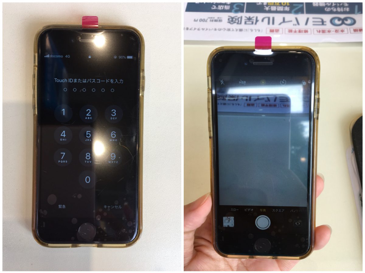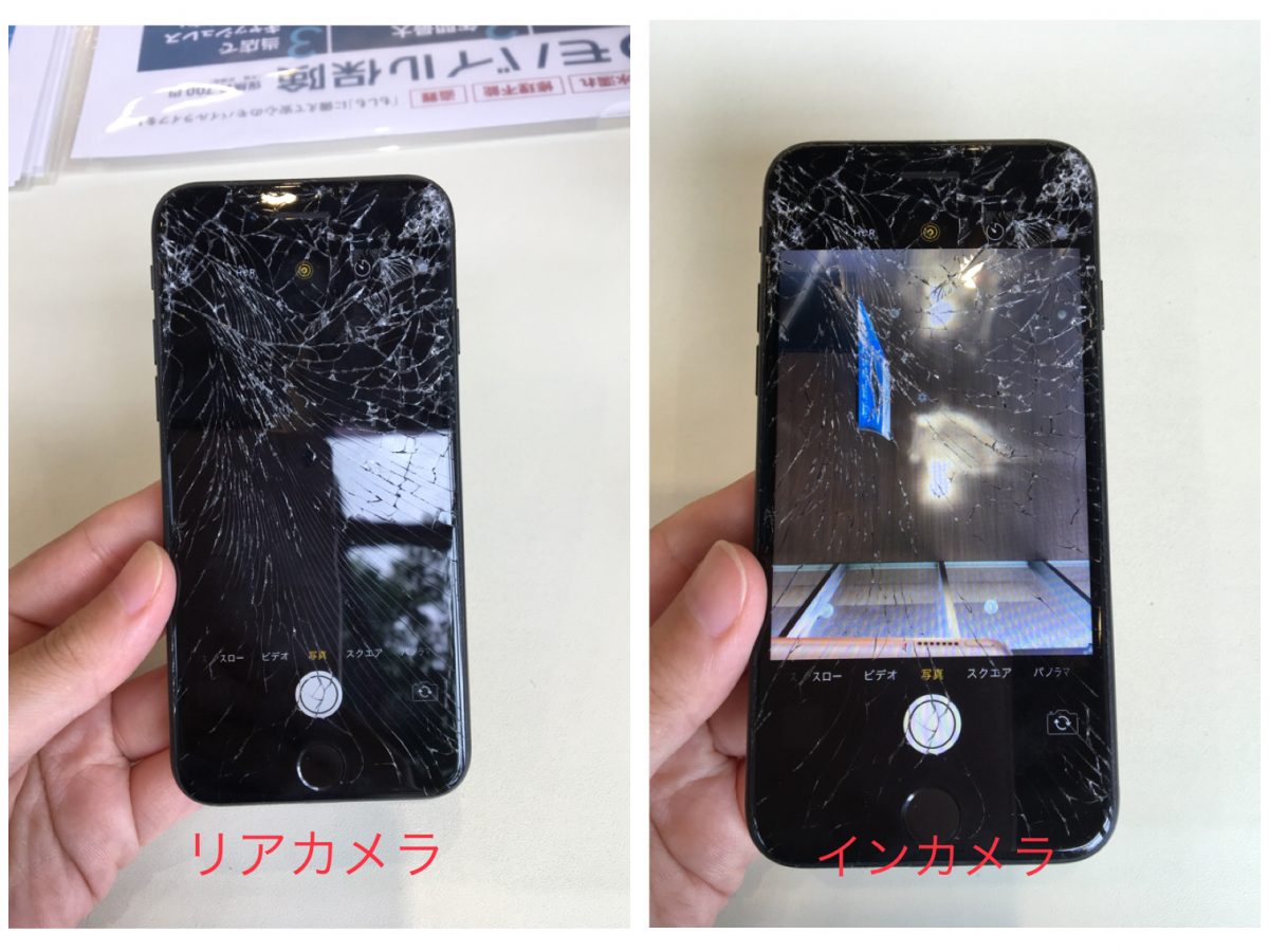 iPhone7や8は落下の衝撃で画面割れと同時にカメラも修理が必要だったり画面が割れていなくてもカメラの修理が必要なケースが多いように思います。