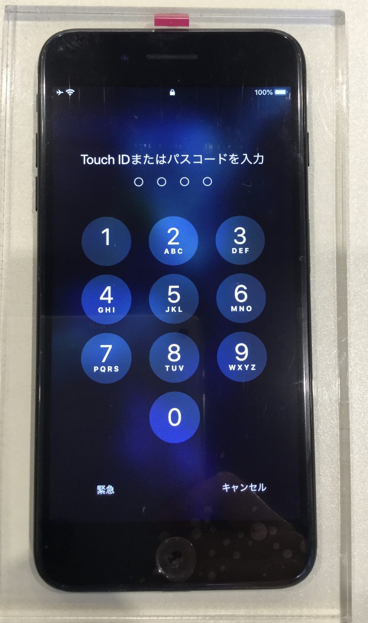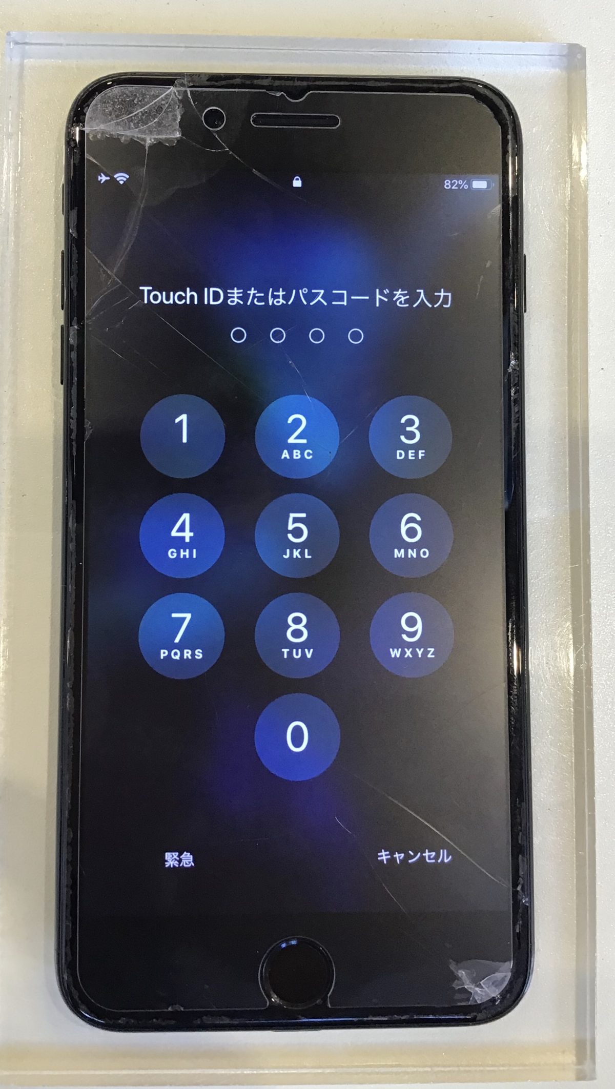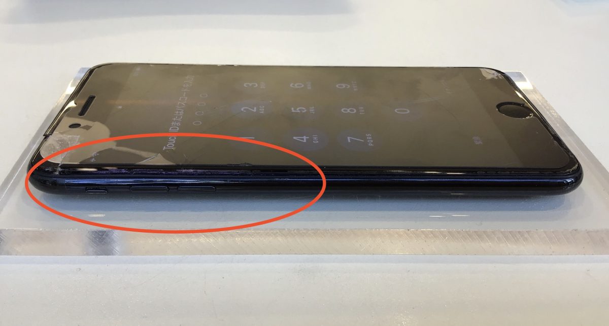 画面が割れ、浮いているiPhone7Plusをお預りしました。