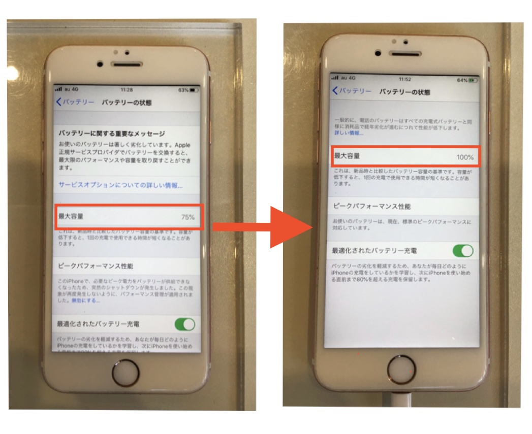 電池の減りが早くてお困りのiPhone6sをお預かりしました。