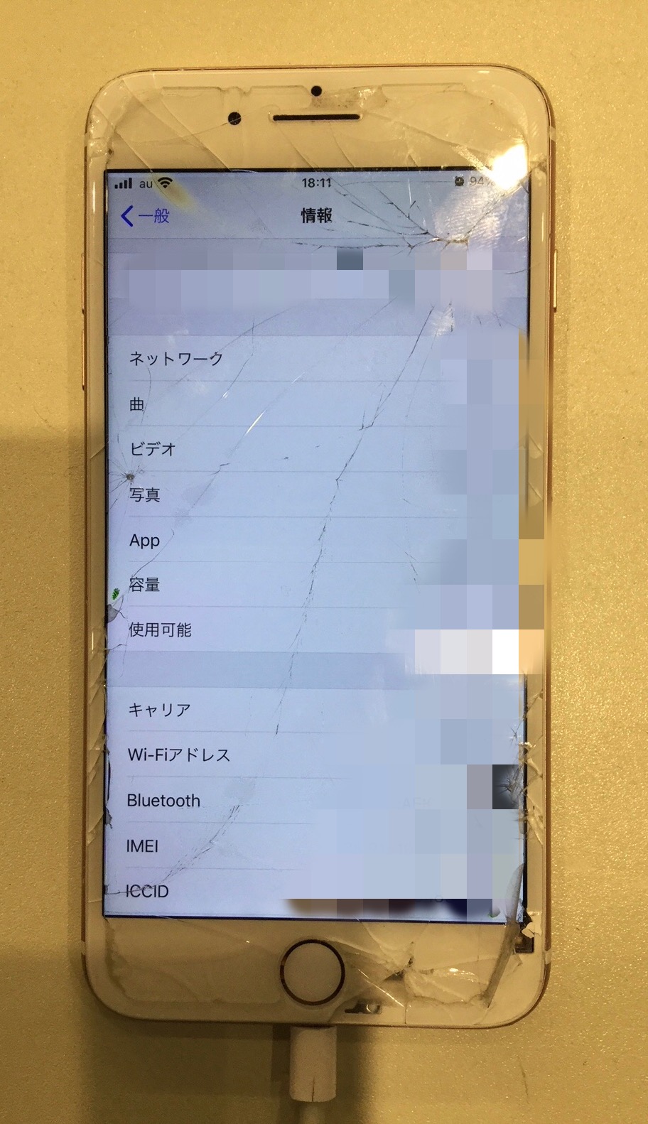 今回お預かりしたiPhone7は自転車に乗っている時に落としてしまい画面の上の方は反応したりしなかったりしていました。