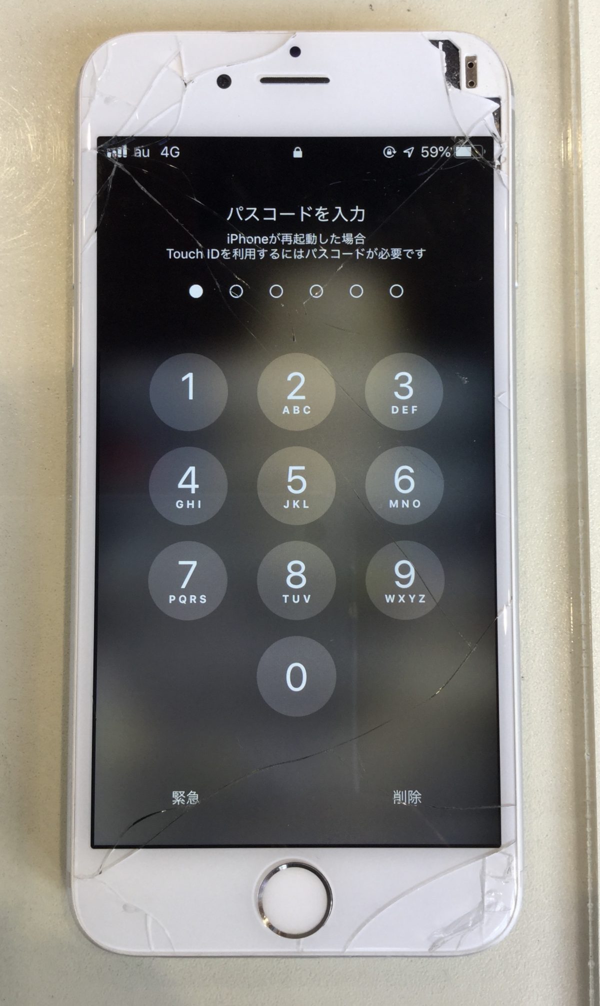 ホームボタンを押せばパスコードを入力する画面は表示されるのですがタッチ操作が出来ないため入力はできなくなっていました。