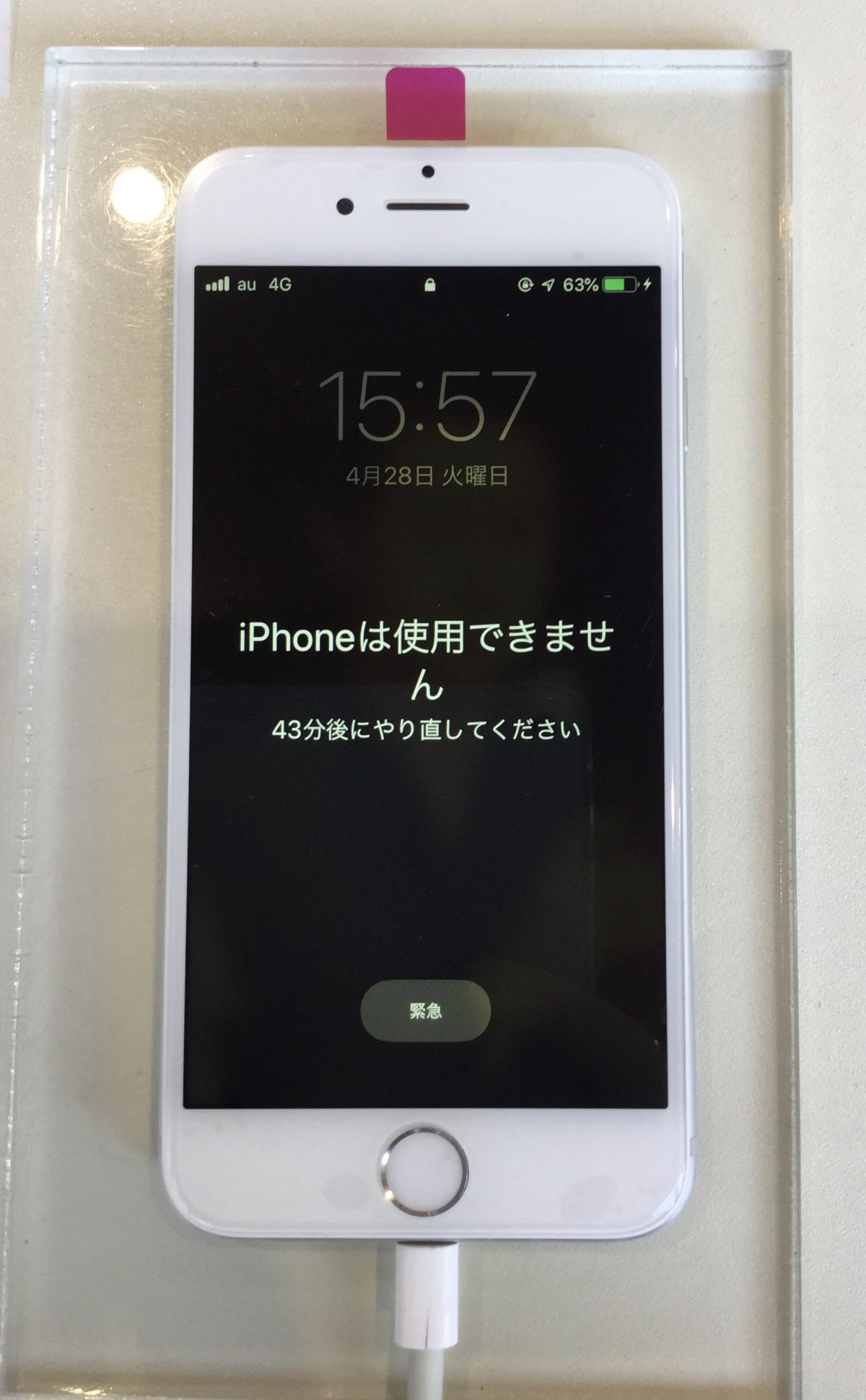 画面が操作できなくなっている間にパスコードが誤入力され使用ができなくなったと考えられます。