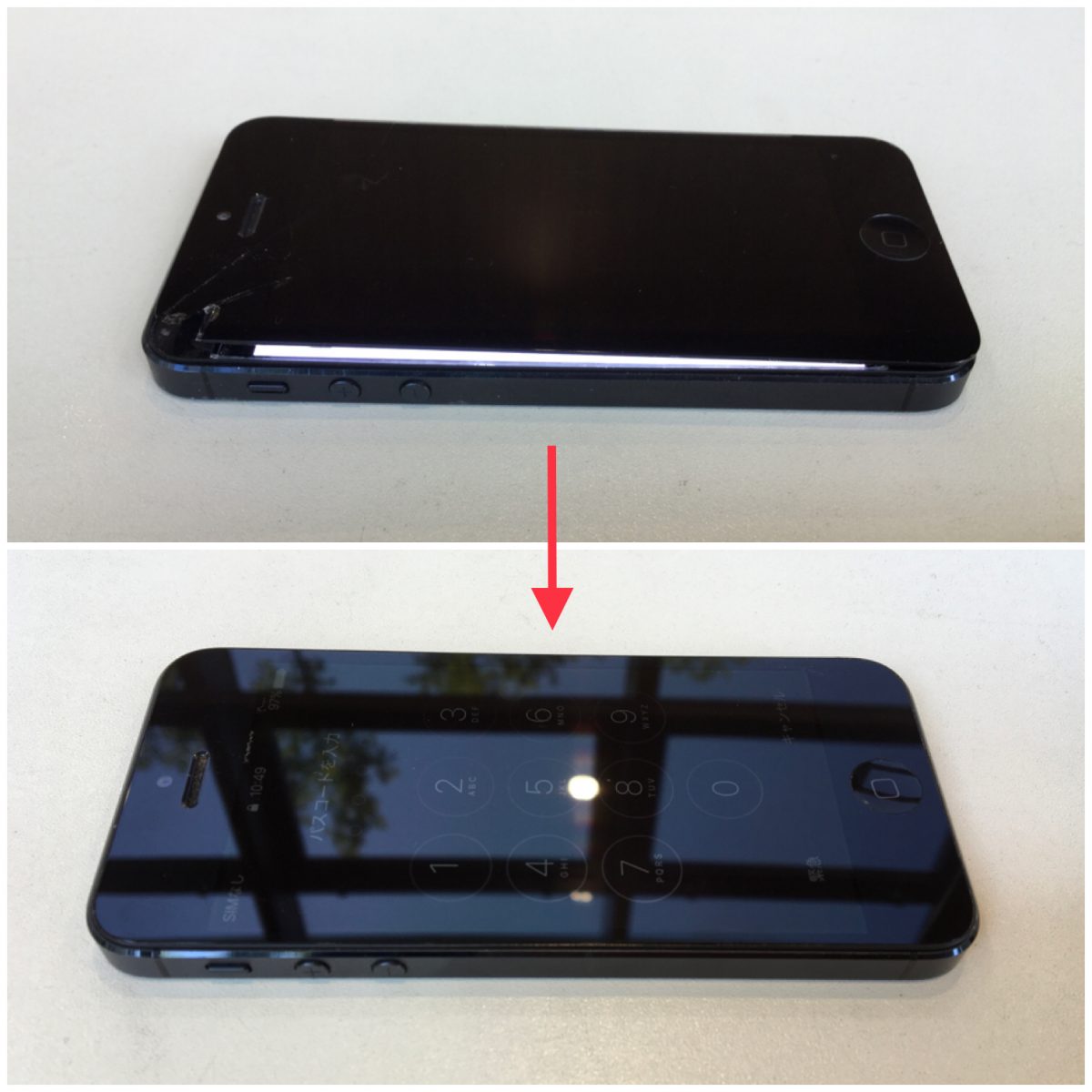 iPhone5の画面が割れて浮いてしまい、何も表示しなくなっても修理できます