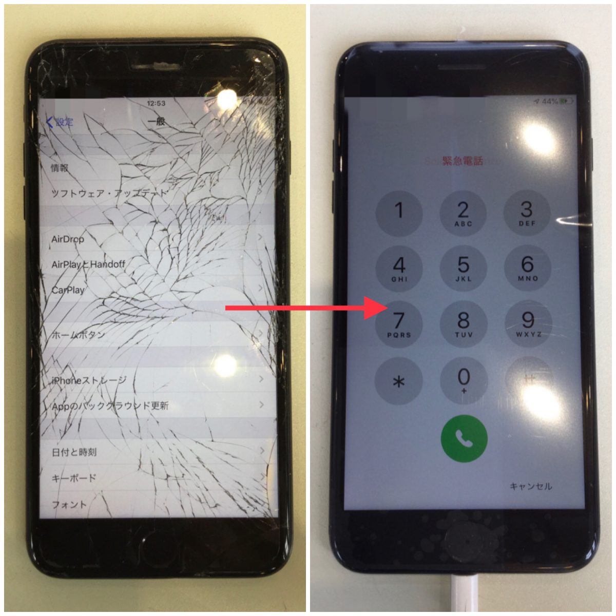 iPhone7 Plusの画面全体がバキバキに割れても30分ほどで直りました