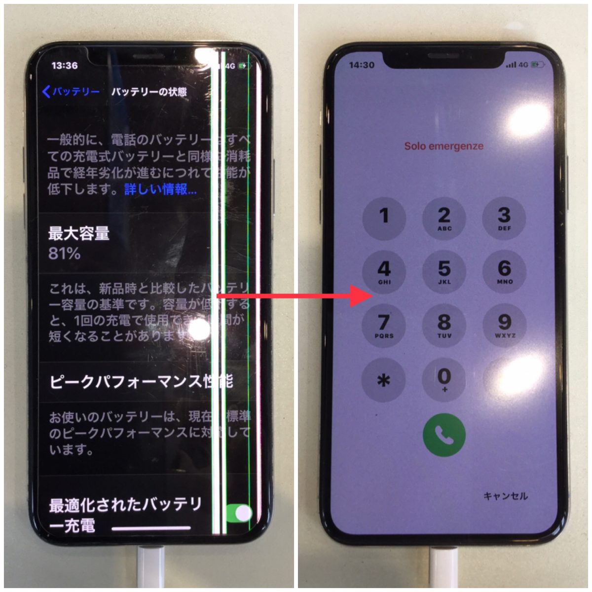 また、2年くらいお使いだったのでバッテリーの最大容量が81%まで減っていて電池がなくなるのが早いとのことでしたのでバッテリー交換もセットで承りました。