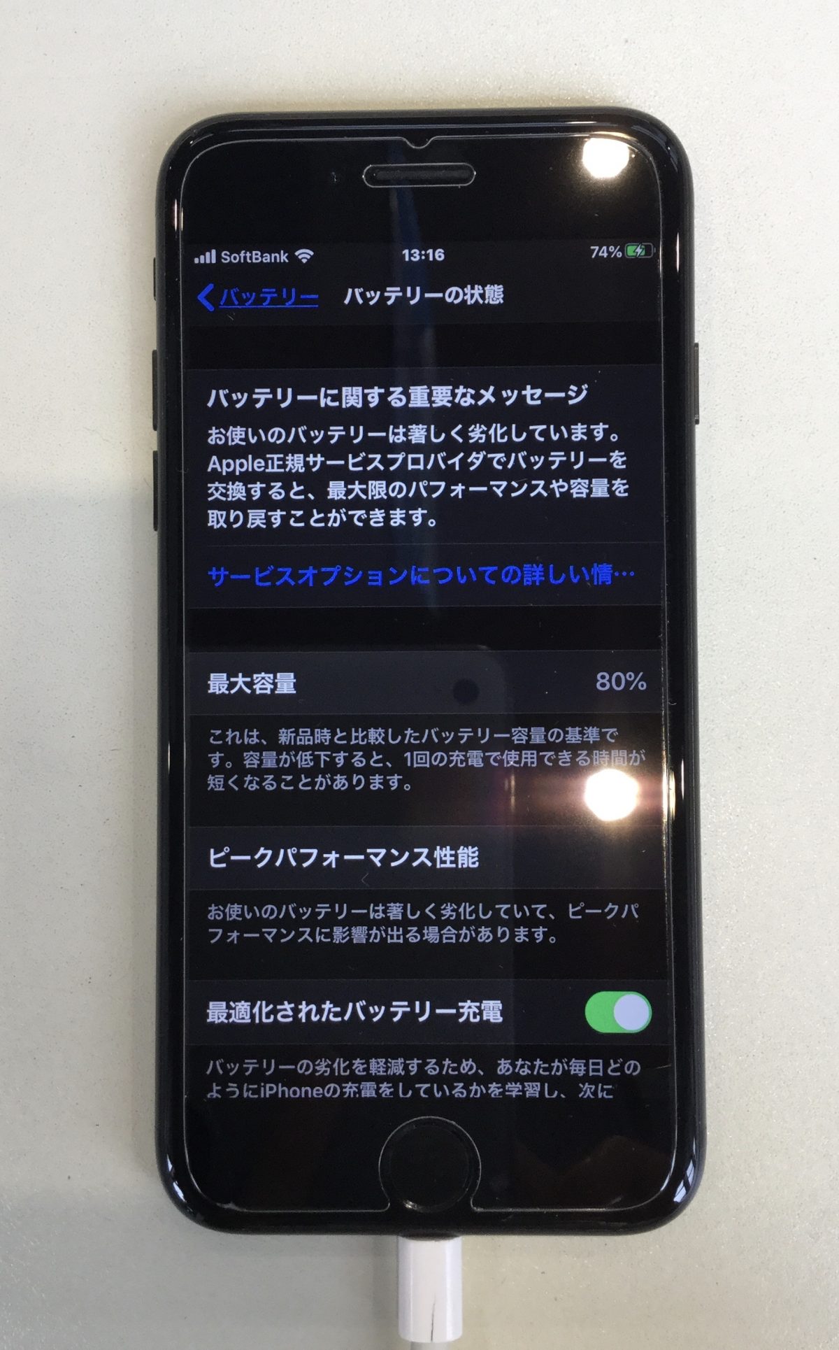 バッテリーの最大容量が80%で著しく劣化しているiPhone7の修理