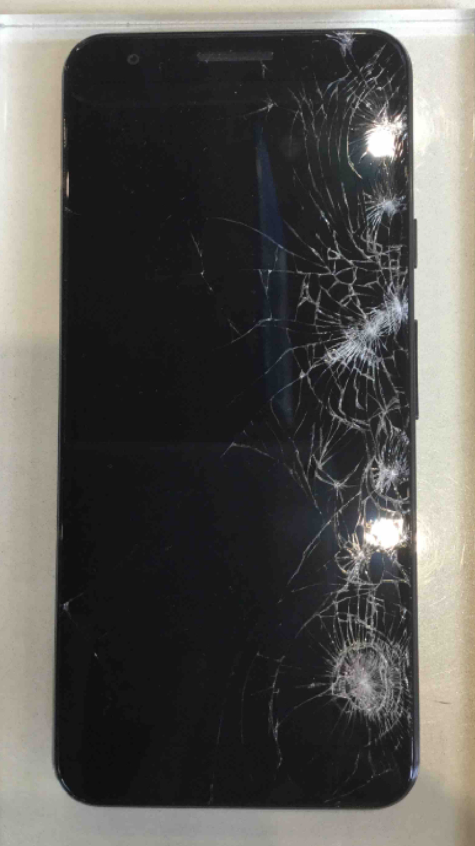 画面全体が割れて着信音などは鳴るものの何も表示されなくなってしまったPixel3aの修理をご依頼いただきました。