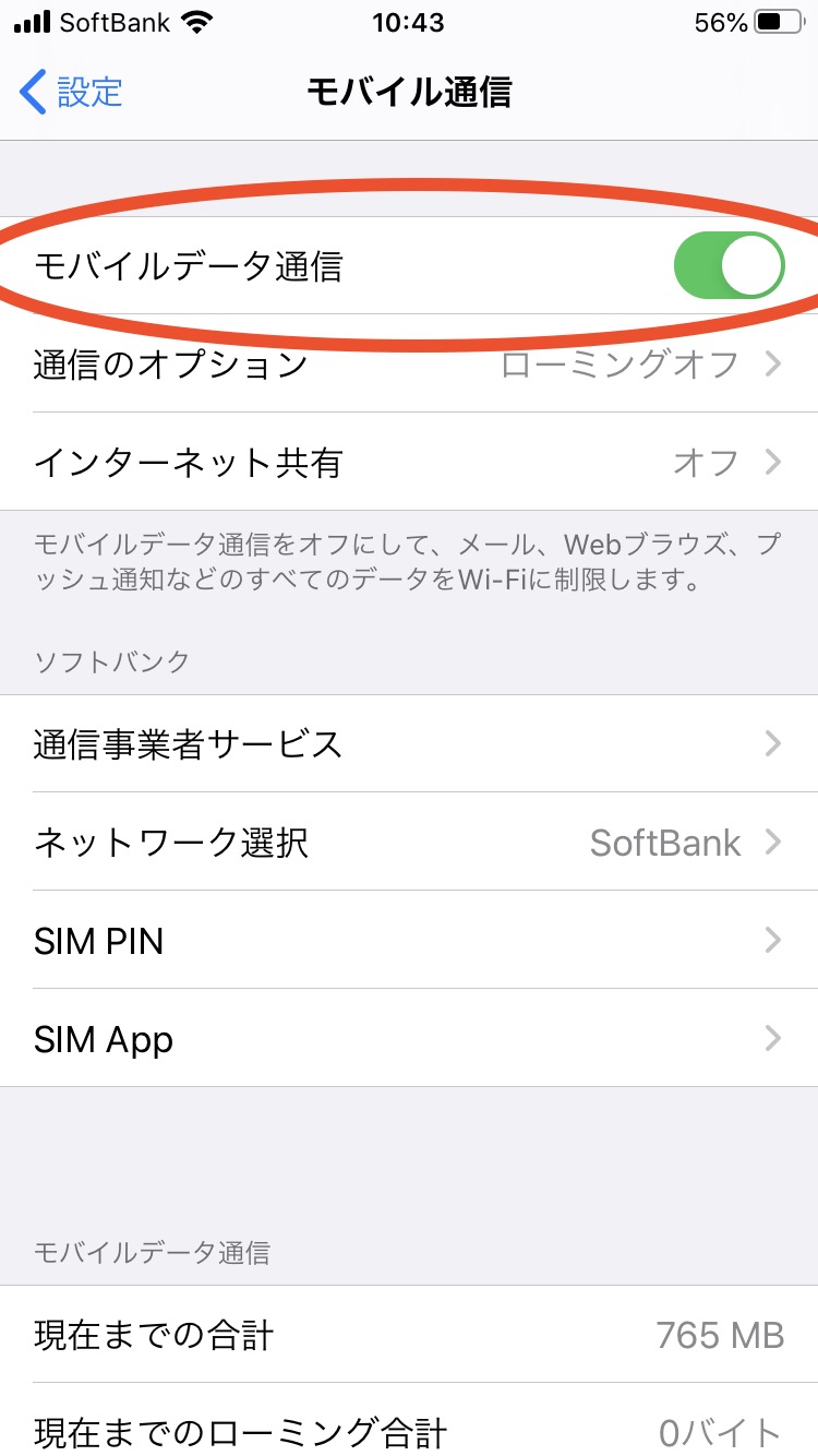 - モバイルネットワークがOFFになっている