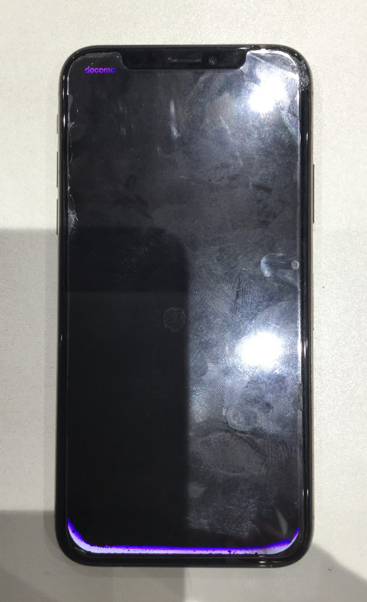 iPhoneXSの画面にヒビが入って何も表示されなくなり修理を承りました。