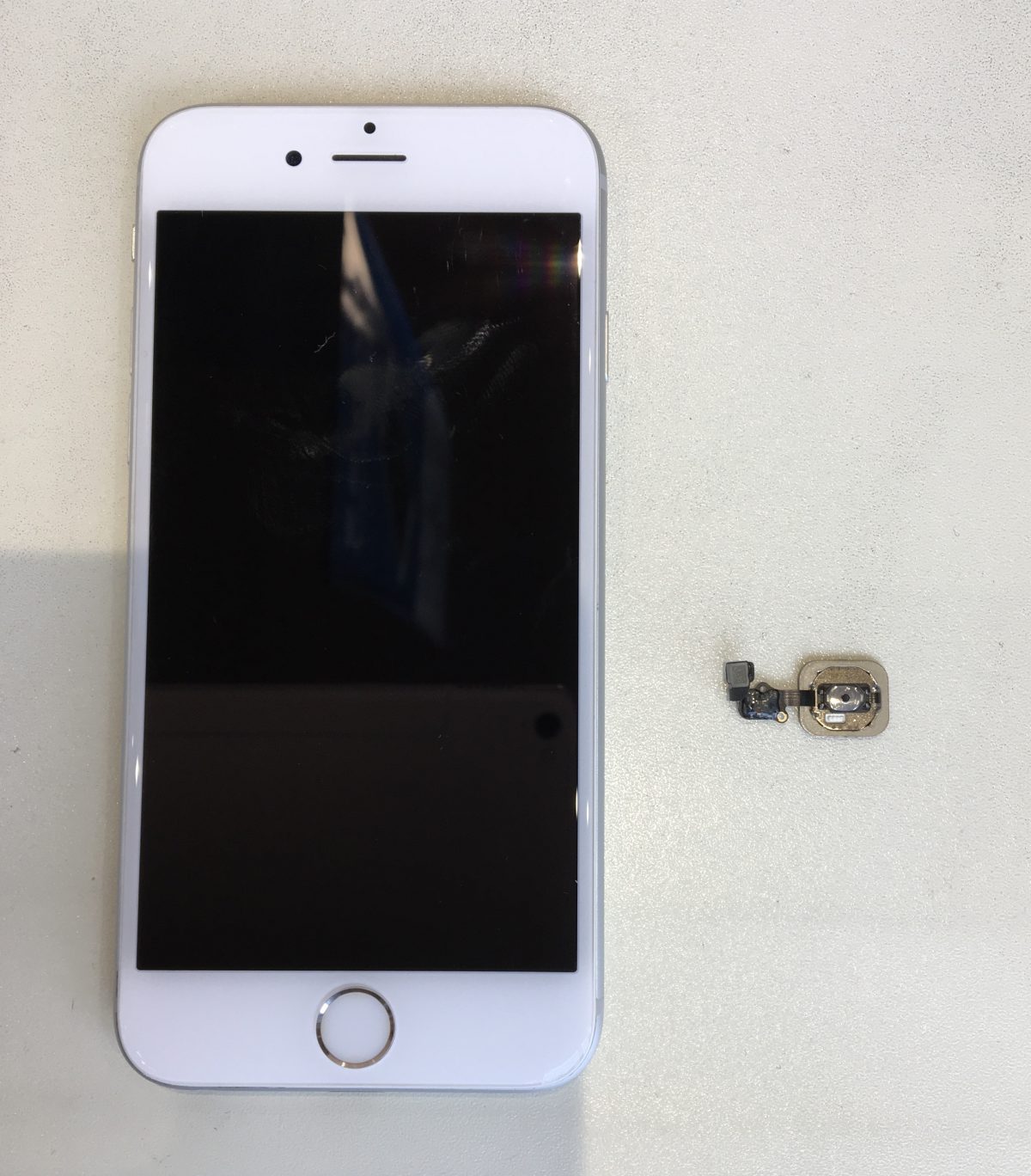 iPhoneのホームボタンが交換できる機種でも交換するとTouch IDは使えなくなるのですが、ボタンを押して操作できる方が良いということで修理を承りました。