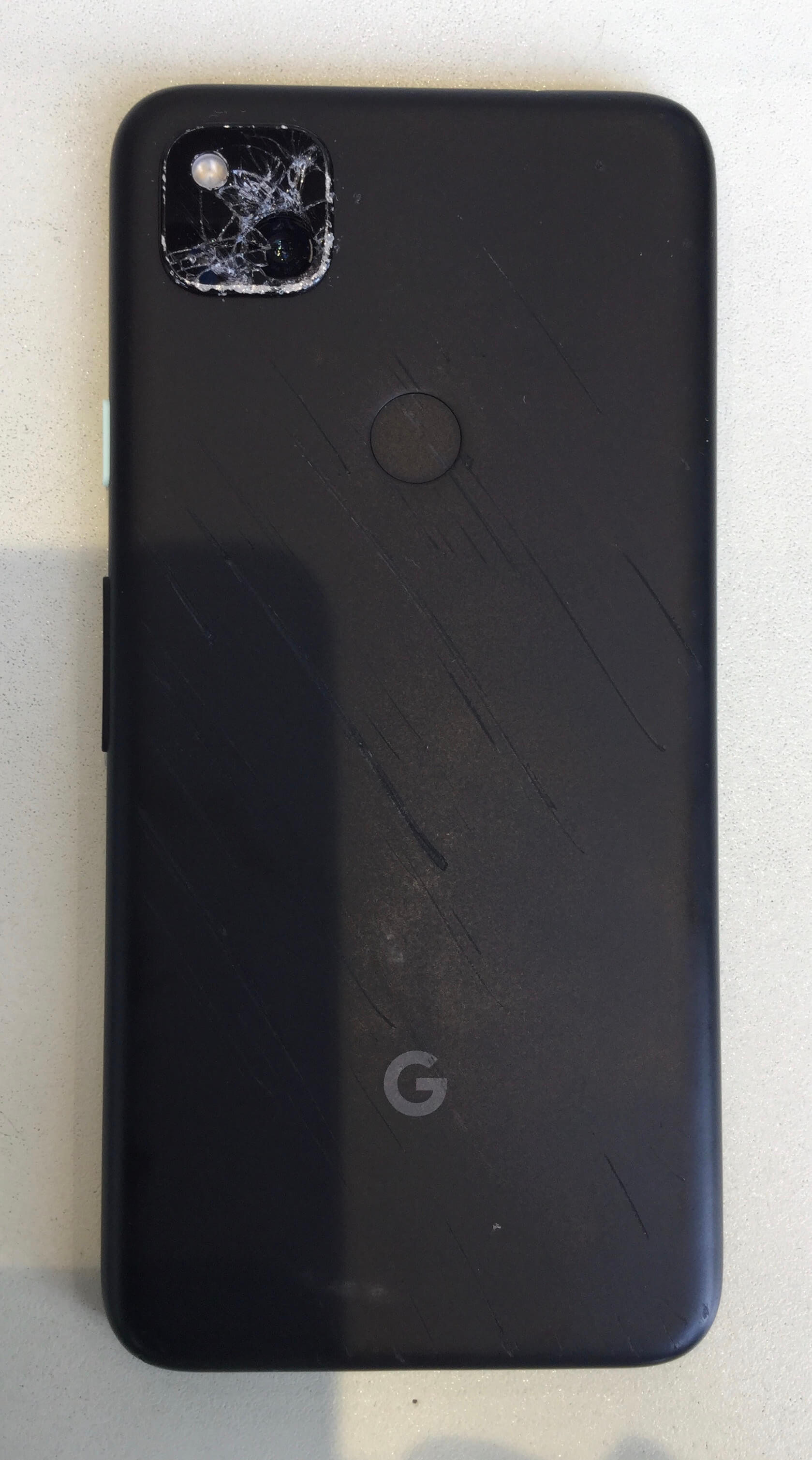 Pixel4aをアスファルトに落としてしまった際に背面側が下向きで引きずられたようになり破損してしまったと修理をご依頼いただきました。