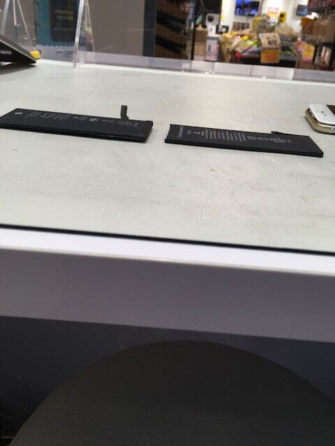 写真だとちょっと違いが分かりにくいですが左が膨張したバッテリー