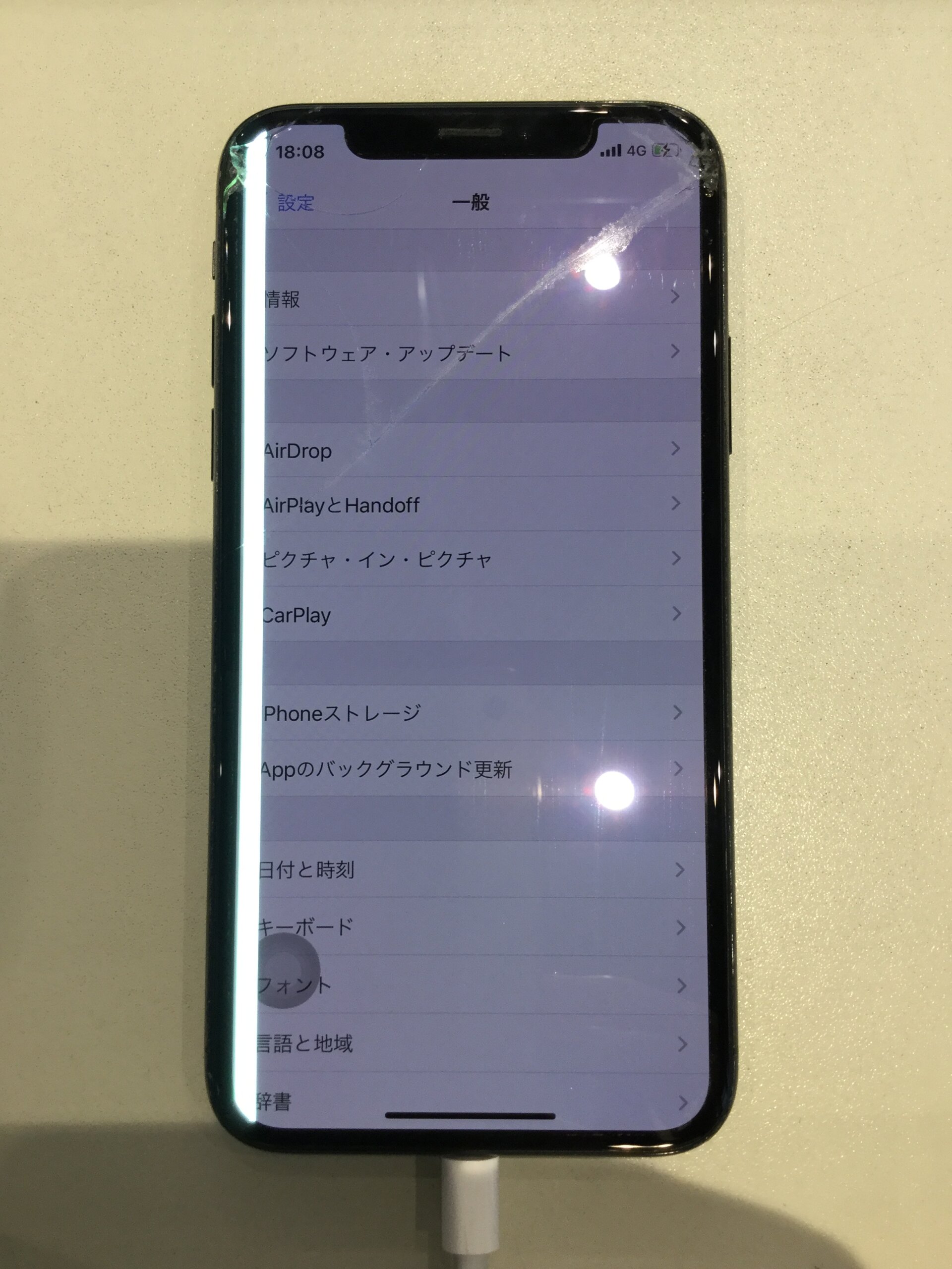 iPhoneXの画面割れに加えて白い線が出ていると修理を承りました。