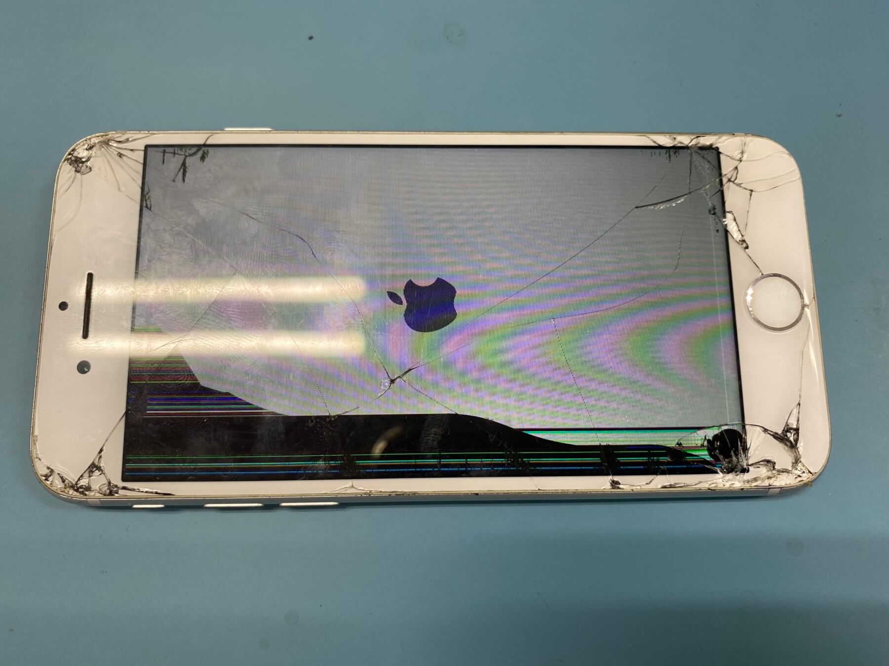 こちらがお客様のiPhone8ですが画面が割れていて液晶漏れもあり、ゴーストタッチにより使用できない状態でした(^^;汗