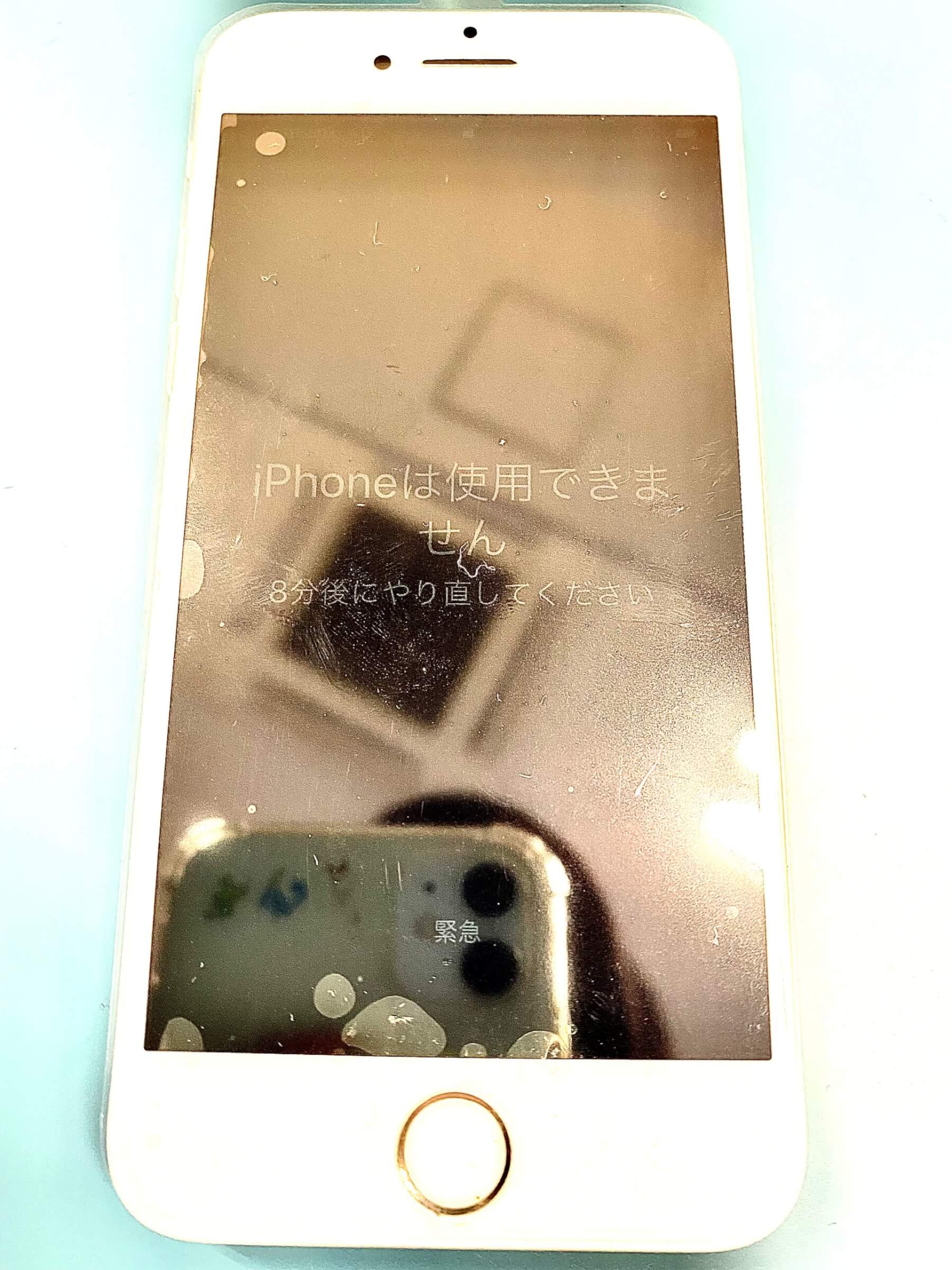 ゴーストタッチが起こる為に勝手に間違ったパスコードが打たれてしまい、見えづらいですが画像のようにiPhoneが1時間使用できなくなっていました∑(゚Д゚)