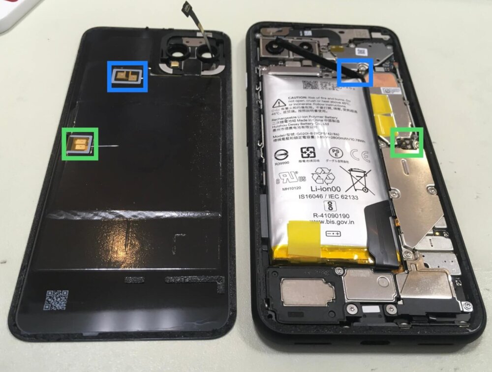 ご覧の通り、背面ガラスの浮きがなくなったことで、NFCとワイヤレス充電の機能も復活しました😊(ピントが後ろの工具に合っていて見えにくいです…すみません😞)
