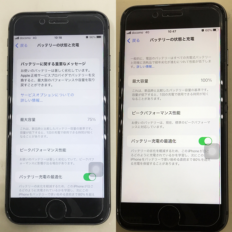 iPhone 8 バッテリー交換のレポート