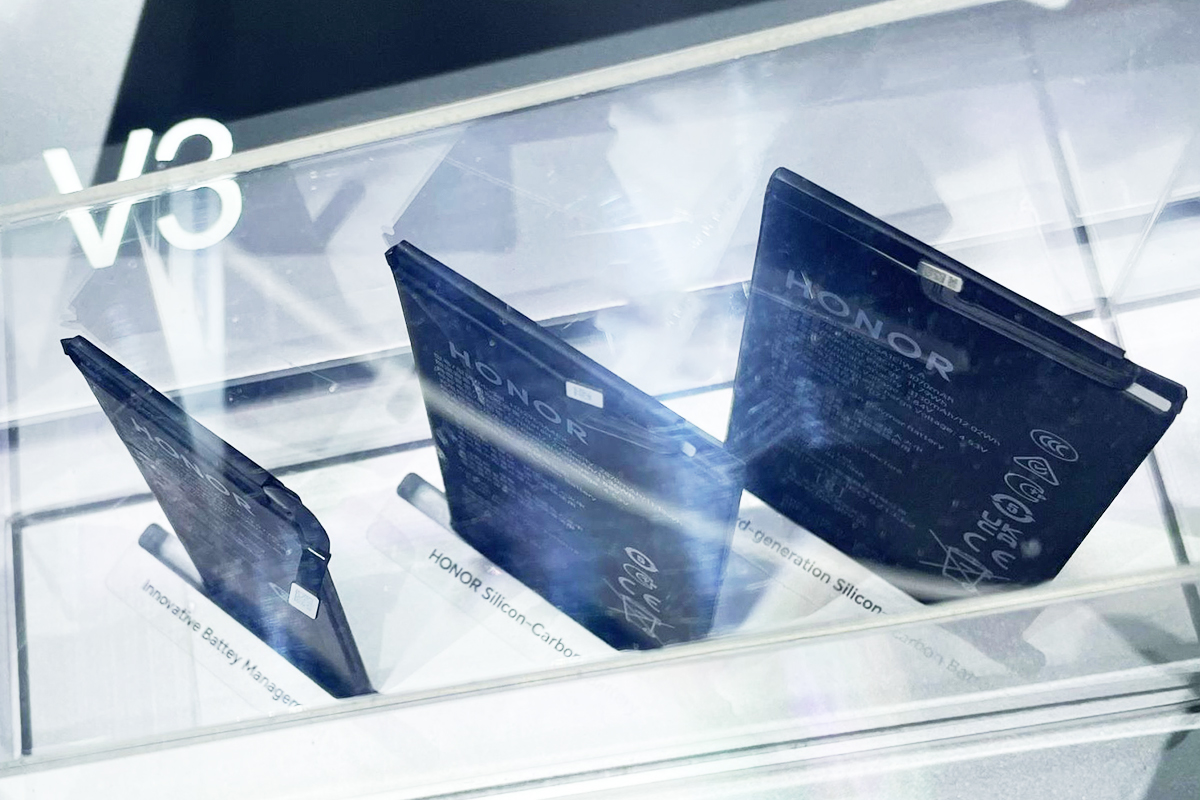 HONORのブースではスマホ用バッテリーの展示もされていましたが、バッテリーも薄型化と大容量化が進んでいるようです。